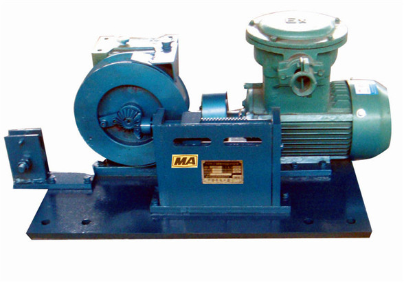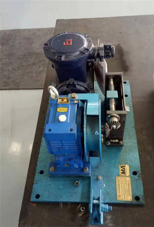 提升绞车由防爆电动机、减速机、滚筒、底板和位置传感器支架及位置传感器组成。减速机采用蜗轮蜗杆减速型,防止电机停转时挡车栏的自动下滑。