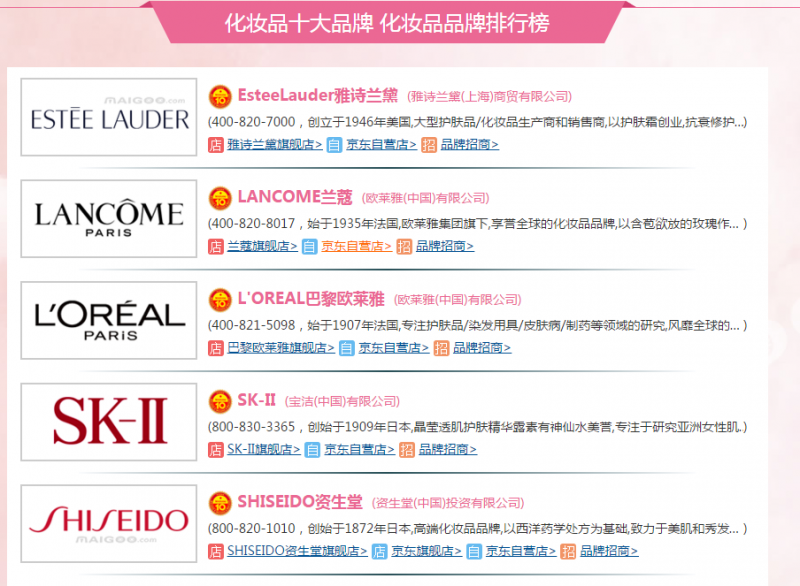 化妆品什么牌子好?选择化妆品最重要的是看质量是否有保证。一般来说选择名厂,名牌的化妆品比较好,因为名厂的设备好,产品标准高,质量有保证,而名牌产品一般也是信得过的产品,使用起来比较安全。不能买无生产厂家和无商品标志的化妆品,同时要注意产品有无检验合格证和生产许可证,以防假冒。下面,为你介绍化妆品十大品牌有哪些: