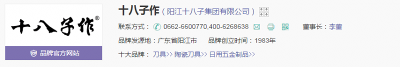 阳江十八子集团有限公司,刀具十大品牌,始于1983年,广东省著名商标,广东省名牌产品,其以手工生产碳钢菜刀起家,集科研炼钢、产、销、旅游为一体的高新技术企业